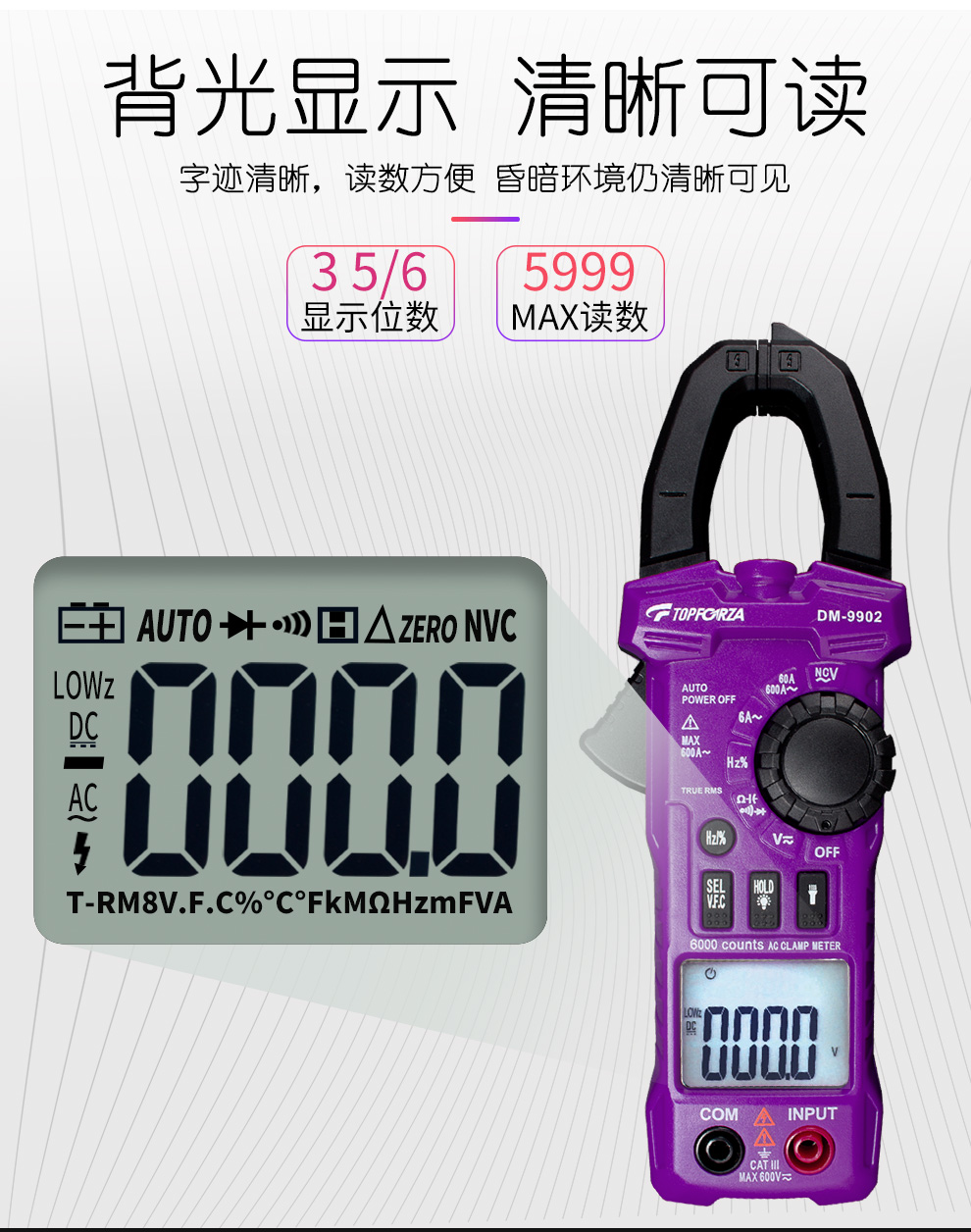 - AC 交流电流:6A/60A/600A(±4.0%+10d)