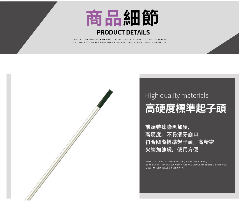 鐵桿頭部加磁處理, 拆/裝卸螺絲不易掉落
