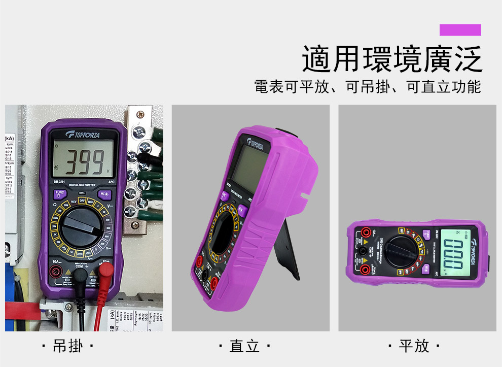 電錶可平放、可吊掛、可直立功能,適用環境廣泛