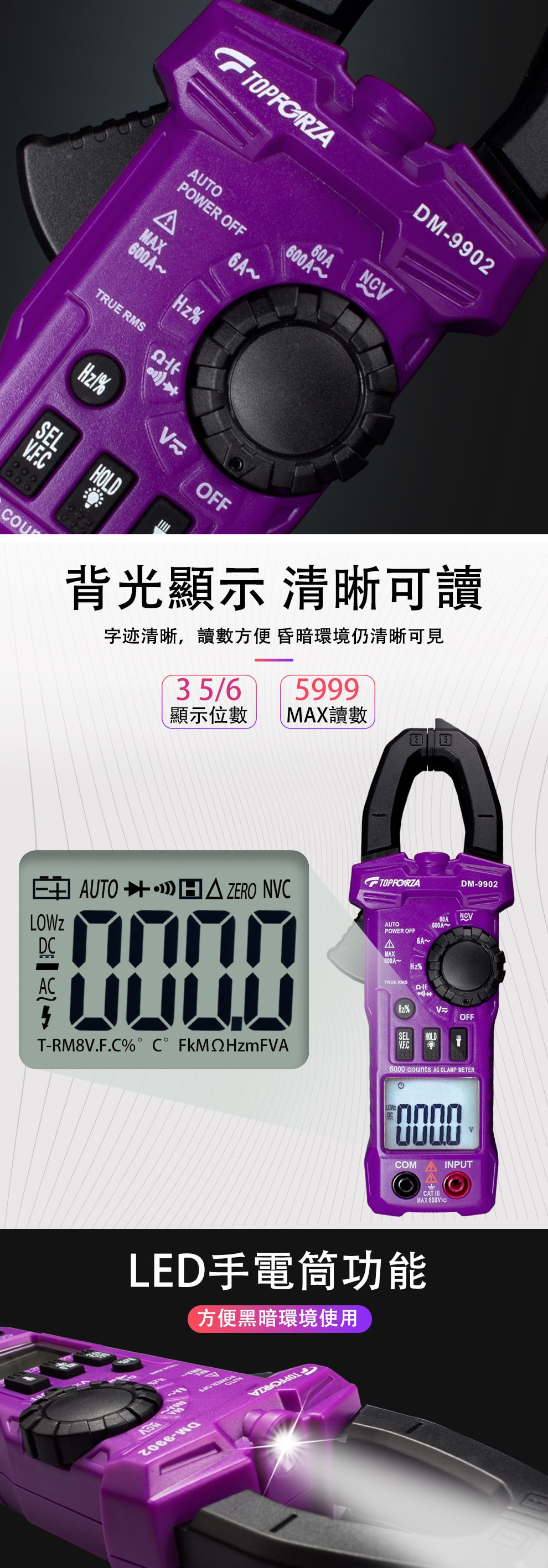- AC 交流電流:6A/60A/600A(±4.0%+10d)