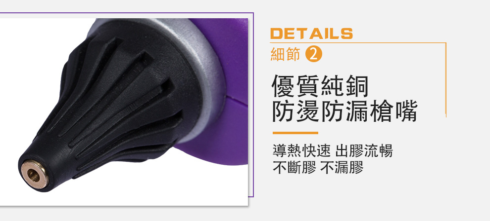 優質純銅槍嘴, 導熱快, 出膠順暢均勻不斷膠, 避免堵塞