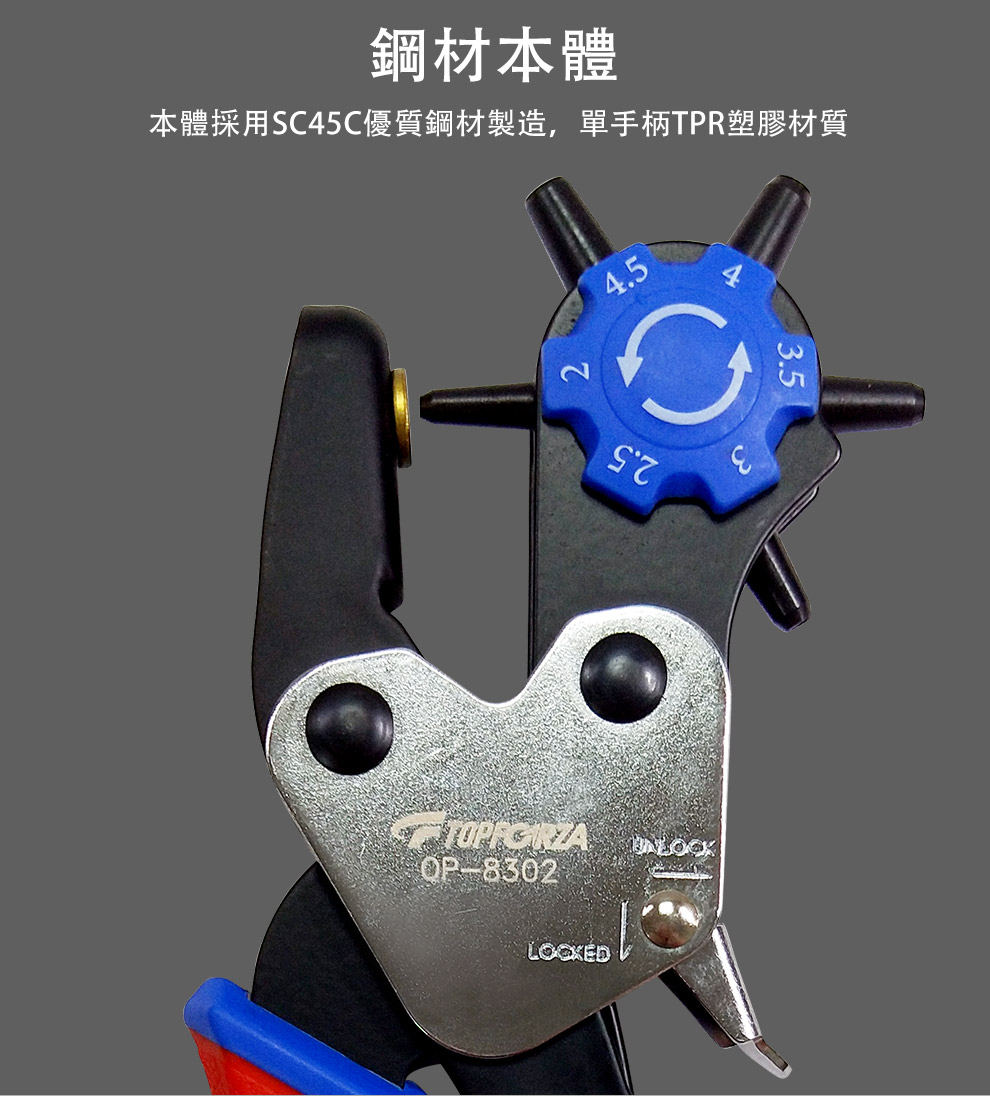 主體採SC45C、TPR+Carbon steel高級鋼材製成 。